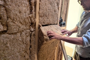 Naast isoleren en technische aanpassingen, hield Joris rekening met de duurzaamheid van de materialen. Voor de binnenwanden koos hij houtvezelisolatie vanwege de vochtregulerende eigenschappen. “Waar mogelijk gebruikten we natuurlijke materialen. Voor de vloer hebben we uiteindelijk toch gekozen voor kunststofisolatie, omdat we zeker wilden weten dat het bestand zou zijn tegen vocht.”