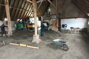 Een van de grootste klussen was het omtoveren van de voormalige koeienstal tot open woonruimte. “We hebben de betonvloer uitgebroken, 30 tot 40 centimeter uitgegraven, en de gebinten vervangen waar nodig. Daarna hebben we bodemisolatie aangebracht, gevolgd door vloerverwarming,” legt Joris uit. “We wilden ook meer licht toevoegen in de ruimte, maar dat vraagt wel om goede berekeningen, want elke extra ruit heeft invloed op de warmtebalans en dus op het vermogen van de warmtepomp.” Inmiddels verwarmt de lucht-waterwarmtepomp het huis en wordt er geen gas meer gestookt.